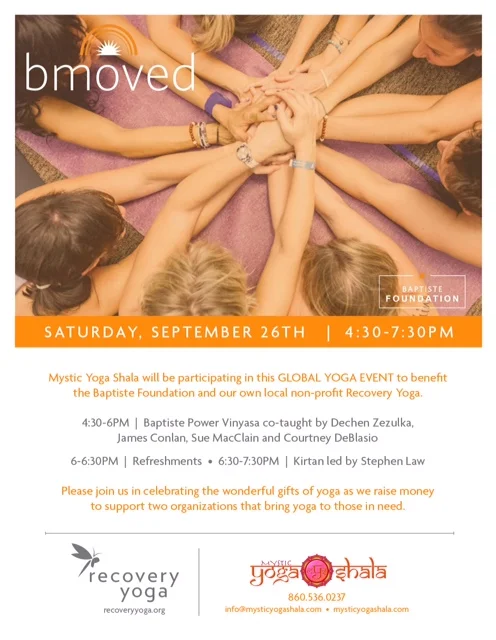 Practice to benefit the Baptiste Foundation and Recovery Yoga...